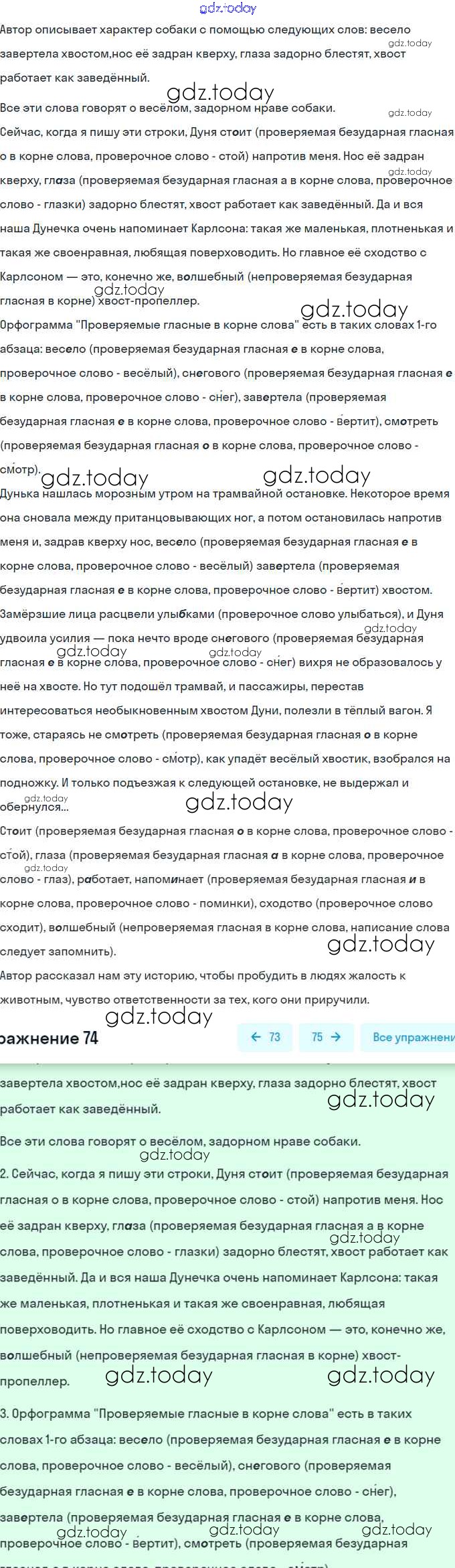 На страницах сайта gdz.today вы найдете учебный и вспомогательный материал, направленный на улучшения знаний школьной программы. ГДЗ - онлайн мир знаний Решение. Часть 1 74 Учебнику по Русскому языку для 5 класса Рыбченкова, Александрова Просвещение 2019