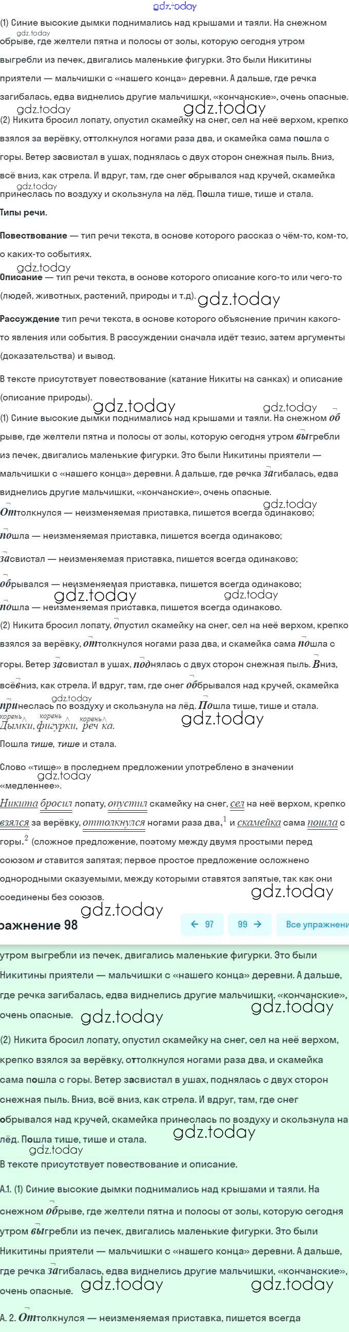 На страницах сайта gdz.today вы найдете учебный и вспомогательный материал, направленный на улучшения знаний школьной программы. ГДЗ - онлайн мир знаний Решение. Часть 1 98 Учебнику по Русскому языку для 5 класса Рыбченкова, Александрова Просвещение 2019