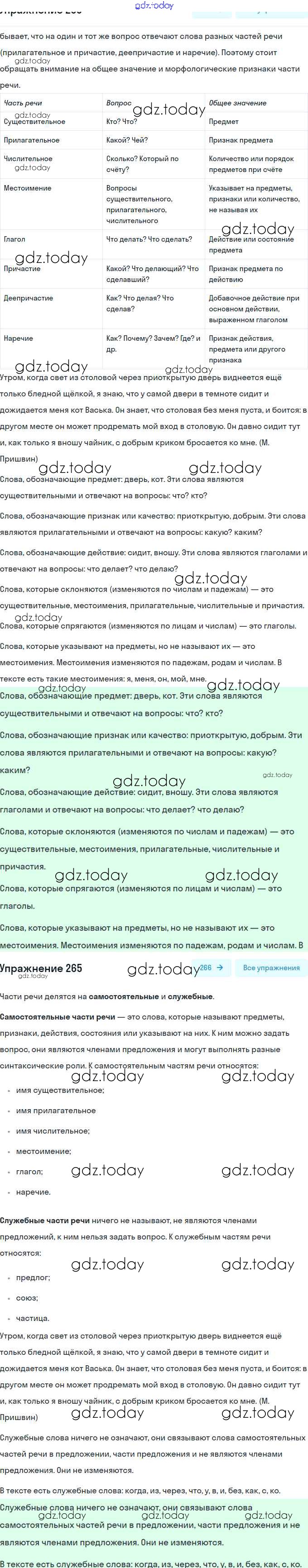 На страницах сайта gdz.today вы найдете учебный и вспомогательный материал, направленный на улучшения знаний школьной программы. ГДЗ - онлайн мир знаний Решение. Часть 2 265 Учебнику по Русскому языку для 5 класса Рыбченкова, Александрова Просвещение 2019