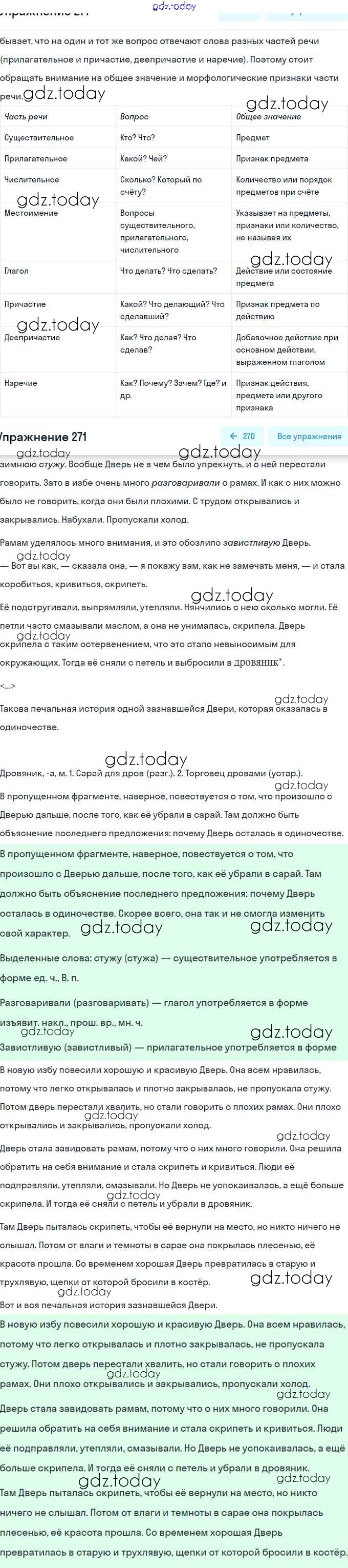 На страницах сайта gdz.today вы найдете учебный и вспомогательный материал, направленный на улучшения знаний школьной программы. ГДЗ - онлайн мир знаний Решение. Часть 2 271 Учебнику по Русскому языку для 5 класса Рыбченкова, Александрова Просвещение 2019