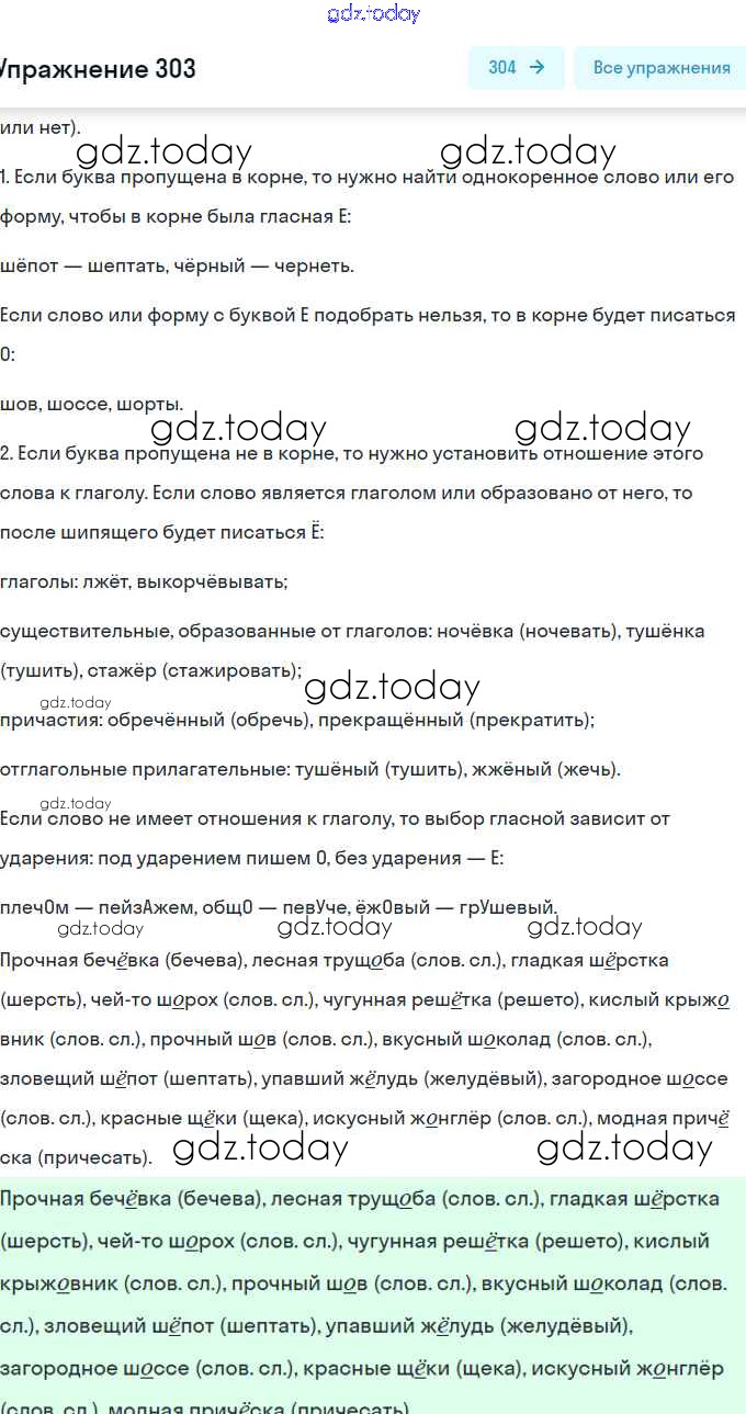 На страницах сайта gdz.today вы найдете учебный и вспомогательный материал, направленный на улучшения знаний школьной программы. ГДЗ - онлайн мир знаний Решение. Часть 2 303 Учебнику по Русскому языку для 5 класса Рыбченкова, Александрова Просвещение 2019