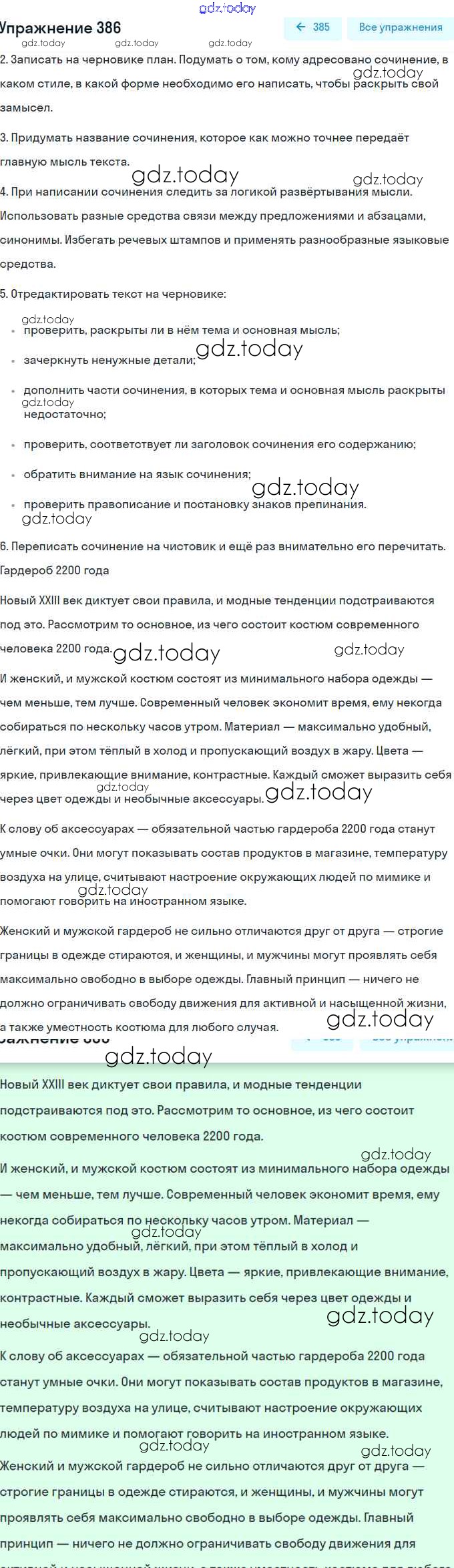 На страницах сайта gdz.today вы найдете учебный и вспомогательный материал, направленный на улучшения знаний школьной программы. ГДЗ - онлайн мир знаний Решение. Часть 2 386 Учебнику по Русскому языку для 5 класса Рыбченкова, Александрова Просвещение 2019