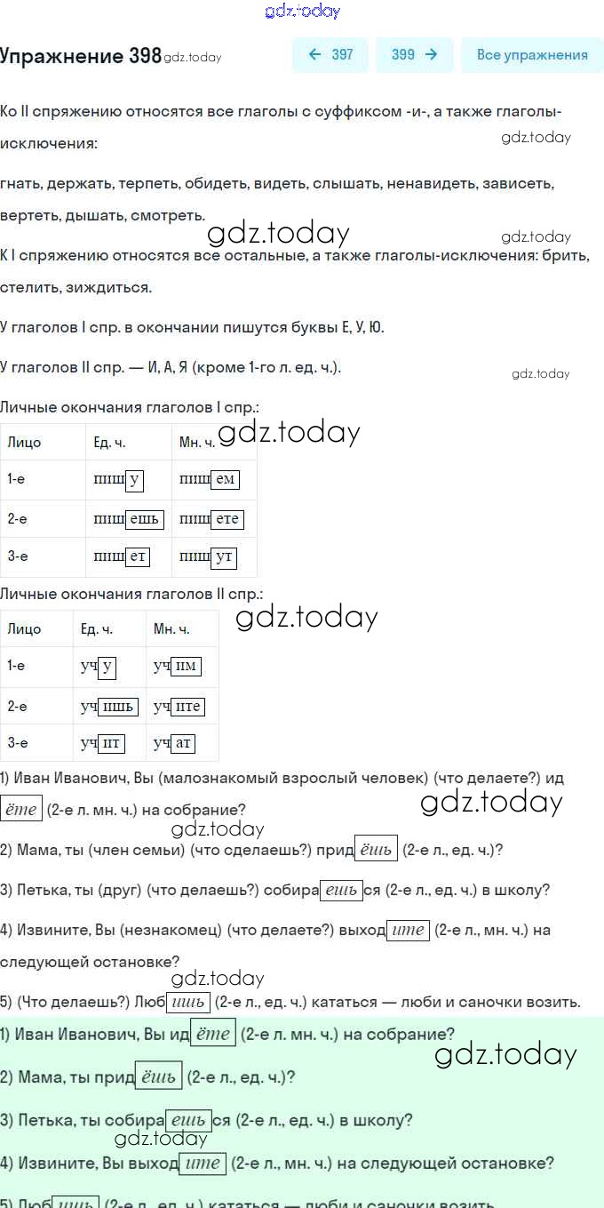 На страницах сайта gdz.today вы найдете учебный и вспомогательный материал, направленный на улучшения знаний школьной программы. ГДЗ - онлайн мир знаний Решение. Часть 2 398 Учебнику по Русскому языку для 5 класса Рыбченкова, Александрова Просвещение 2019
