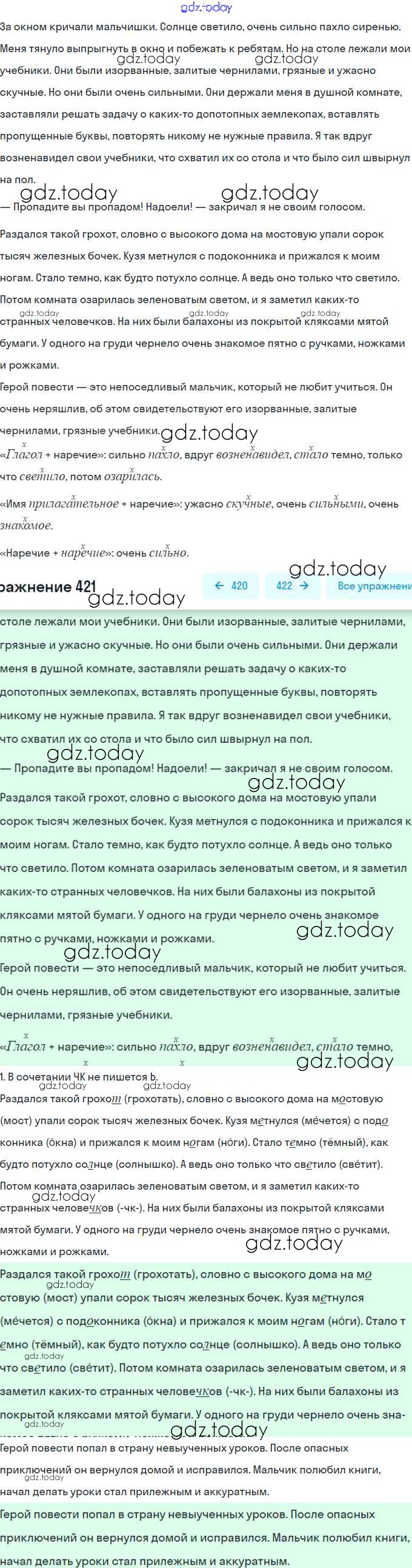 На страницах сайта gdz.today вы найдете учебный и вспомогательный материал, направленный на улучшения знаний школьной программы. ГДЗ - онлайн мир знаний Решение. Часть 2 421 Учебнику по Русскому языку для 5 класса Рыбченкова, Александрова Просвещение 2019