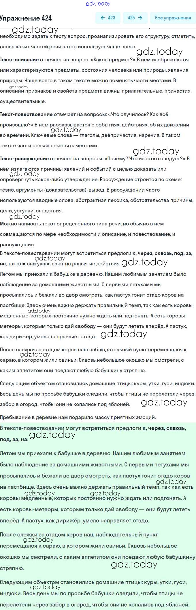 На страницах сайта gdz.today вы найдете учебный и вспомогательный материал, направленный на улучшения знаний школьной программы. ГДЗ - онлайн мир знаний Решение. Часть 2 424 Учебнику по Русскому языку для 5 класса Рыбченкова, Александрова Просвещение 2019