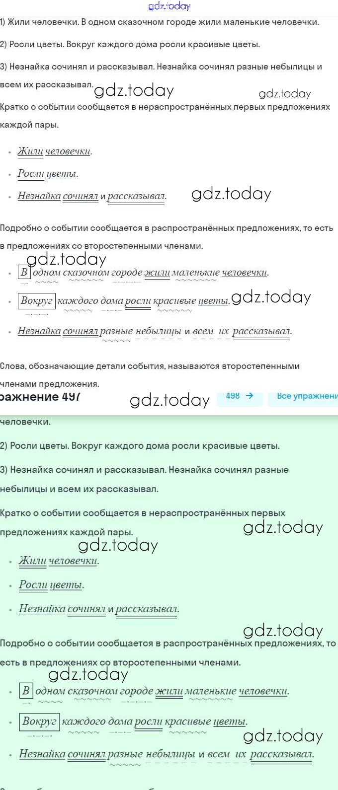 На страницах сайта gdz.today вы найдете учебный и вспомогательный материал, направленный на улучшения знаний школьной программы. ГДЗ - онлайн мир знаний Решение. Часть 2 497 Учебнику по Русскому языку для 5 класса Рыбченкова, Александрова Просвещение 2019