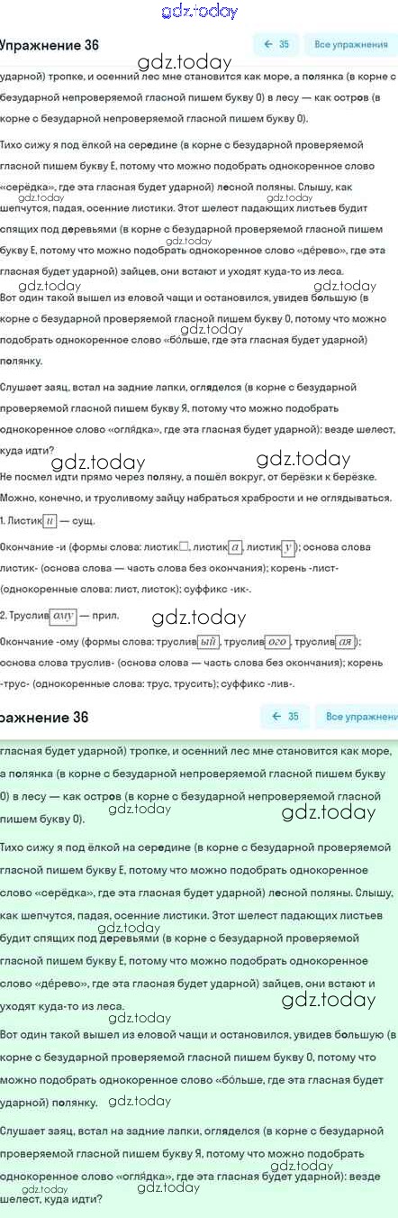 На страницах сайта gdz.today вы найдете учебный и вспомогательный материал, направленный на улучшения знаний школьной программы. ГДЗ - онлайн мир знаний Глава 1 Решение. Часть 1 36 Учебнику по Русскому языку для 5 класса Шмелёв, Флоренская Вентана-граф Алгоритм успеха 2022