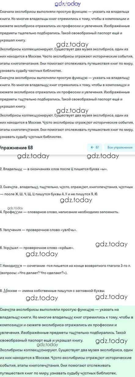 На страницах сайта gdz.today вы найдете учебный и вспомогательный материал, направленный на улучшения знаний школьной программы. ГДЗ - онлайн мир знаний Глава 2 Решение. Часть 1 68 Учебнику по Русскому языку для 5 класса Шмелёв, Флоренская Вентана-граф Алгоритм успеха 2022