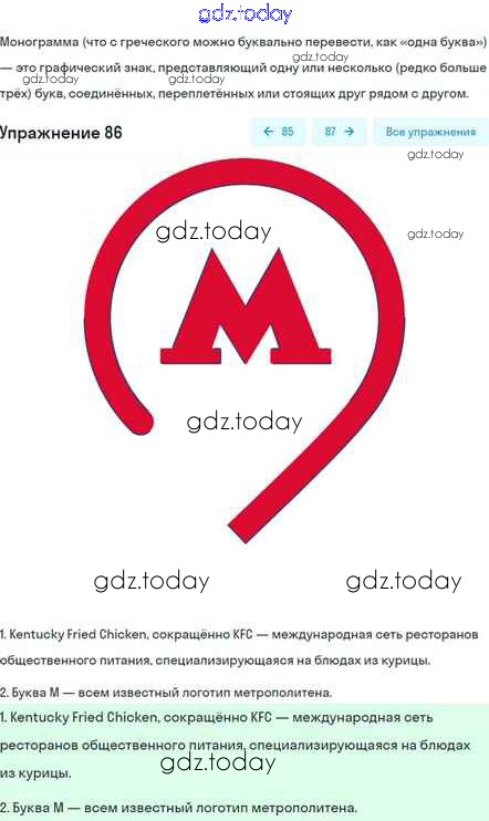 На страницах сайта gdz.today вы найдете учебный и вспомогательный материал, направленный на улучшения знаний школьной программы. ГДЗ - онлайн мир знаний Глава 2 Решение. Часть 1 86 Учебнику по Русскому языку для 5 класса Шмелёв, Флоренская Вентана-граф Алгоритм успеха 2022