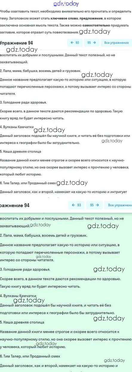 На страницах сайта gdz.today вы найдете учебный и вспомогательный материал, направленный на улучшения знаний школьной программы. ГДЗ - онлайн мир знаний Глава 2 Решение. Часть 1 94 Учебнику по Русскому языку для 5 класса Шмелёв, Флоренская Вентана-граф Алгоритм успеха 2022