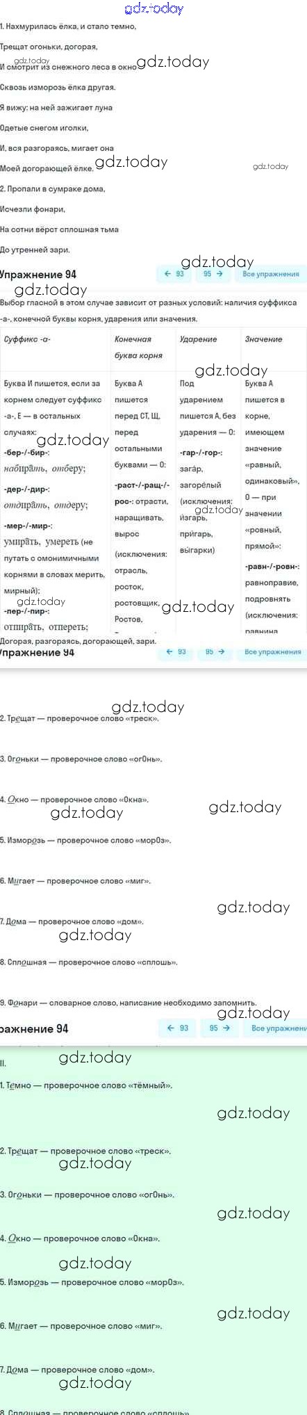 На страницах сайта gdz.today вы найдете учебный и вспомогательный материал, направленный на улучшения знаний школьной программы. ГДЗ - онлайн мир знаний Глава 3 Решение. Часть 1 94 Учебнику по Русскому языку для 5 класса Шмелёв, Флоренская Вентана-граф Алгоритм успеха 2022