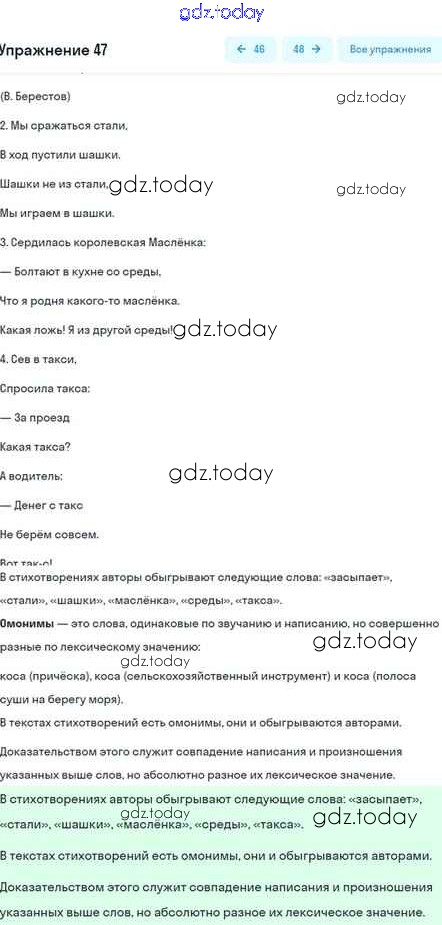 На страницах сайта gdz.today вы найдете учебный и вспомогательный материал, направленный на улучшения знаний школьной программы. ГДЗ - онлайн мир знаний Глава 4 Решение. Часть 1 47 Учебнику по Русскому языку для 5 класса Шмелёв, Флоренская Вентана-граф Алгоритм успеха 2022