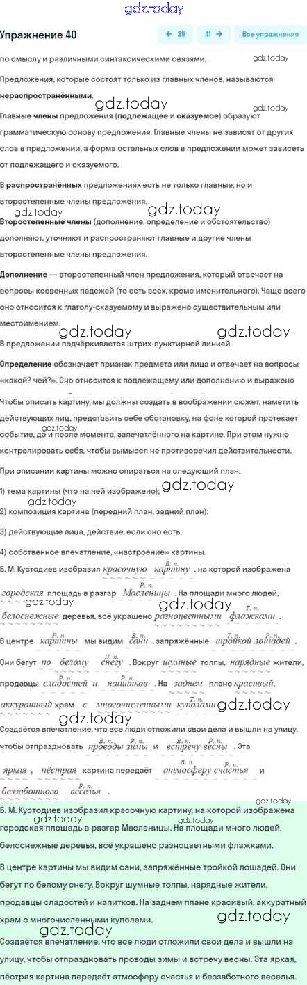 На страницах сайта gdz.today вы найдете учебный и вспомогательный материал, направленный на улучшения знаний школьной программы. ГДЗ - онлайн мир знаний Глава 5 Решение. Часть 2 40 Учебнику по Русскому языку для 5 класса Шмелёв, Флоренская Вентана-граф Алгоритм успеха 2022