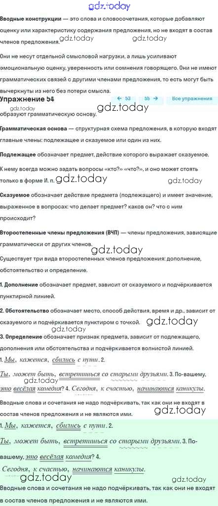 На страницах сайта gdz.today вы найдете учебный и вспомогательный материал, направленный на улучшения знаний школьной программы. ГДЗ - онлайн мир знаний Глава 5 Решение. Часть 2 54 Учебнику по Русскому языку для 5 класса Шмелёв, Флоренская Вентана-граф Алгоритм успеха 2022