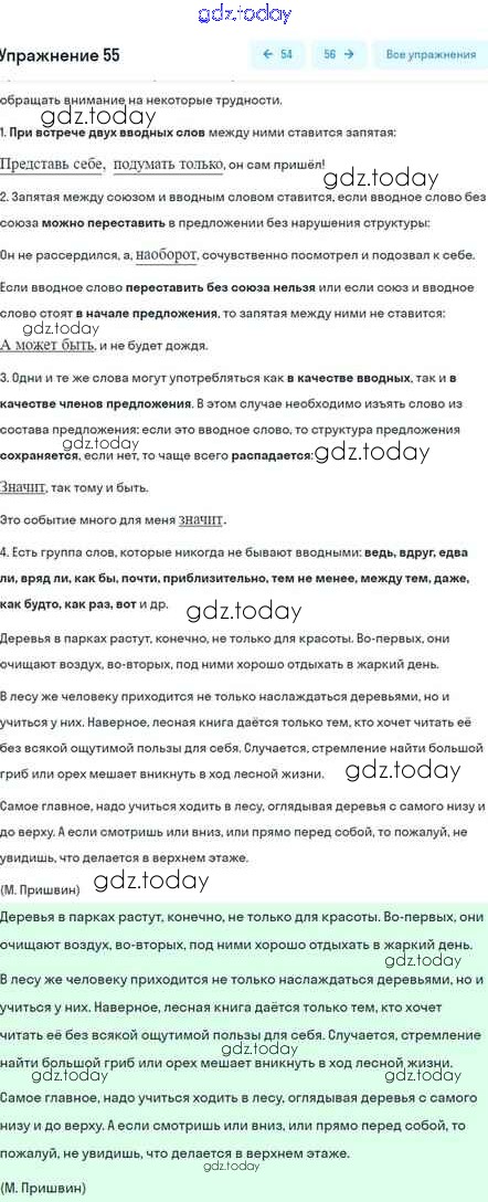 На страницах сайта gdz.today вы найдете учебный и вспомогательный материал, направленный на улучшения знаний школьной программы. ГДЗ - онлайн мир знаний Глава 5 Решение. Часть 2 55 Учебнику по Русскому языку для 5 класса Шмелёв, Флоренская Вентана-граф Алгоритм успеха 2022