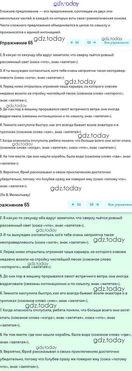 На страницах сайта gdz.today вы найдете учебный и вспомогательный материал, направленный на улучшения знаний школьной программы. ГДЗ - онлайн мир знаний Глава 5 Решение. Часть 2 65 Учебнику по Русскому языку для 5 класса Шмелёв, Флоренская Вентана-граф Алгоритм успеха 2022
