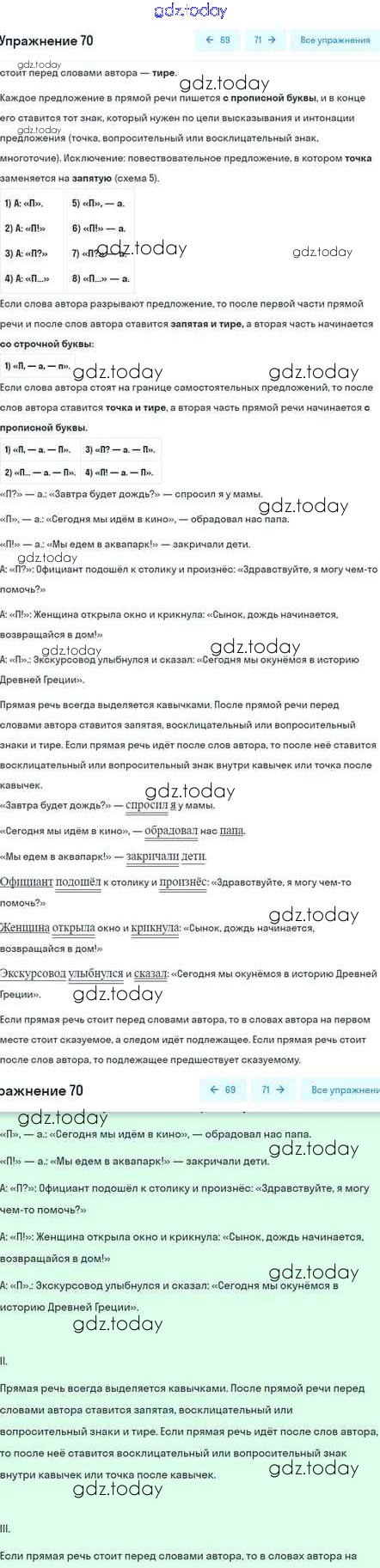 На страницах сайта gdz.today вы найдете учебный и вспомогательный материал, направленный на улучшения знаний школьной программы. ГДЗ - онлайн мир знаний Глава 5 Решение. Часть 2 70 Учебнику по Русскому языку для 5 класса Шмелёв, Флоренская Вентана-граф Алгоритм успеха 2022