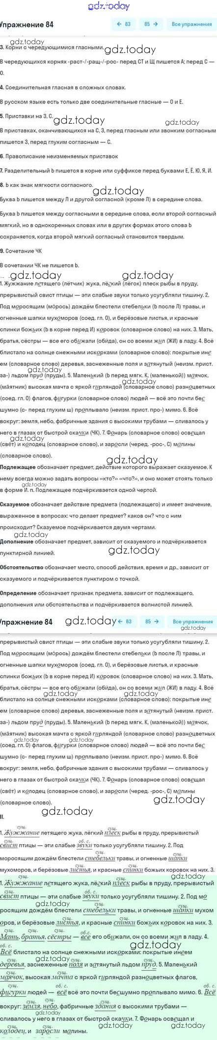 На страницах сайта gdz.today вы найдете учебный и вспомогательный материал, направленный на улучшения знаний школьной программы. ГДЗ - онлайн мир знаний Глава 5 Решение. Часть 2 84 Учебнику по Русскому языку для 5 класса Шмелёв, Флоренская Вентана-граф Алгоритм успеха 2022