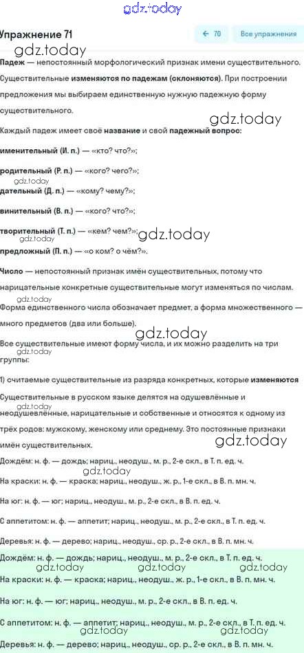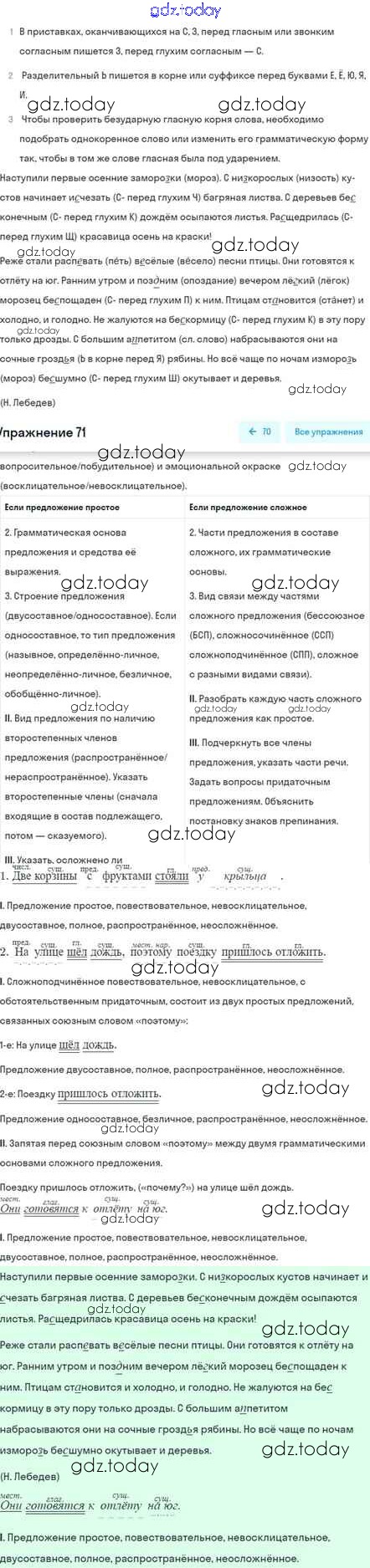 На страницах сайта gdz.today вы найдете учебный и вспомогательный материал, направленный на улучшения знаний школьной программы. ГДЗ - онлайн мир знаний Глава 6 Решение. Часть 2 71 Учебнику по Русскому языку для 5 класса Шмелёв, Флоренская Вентана-граф Алгоритм успеха 2022
