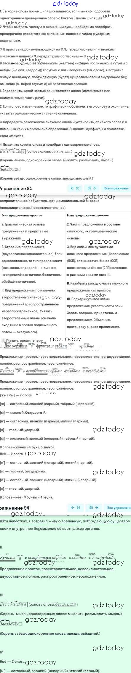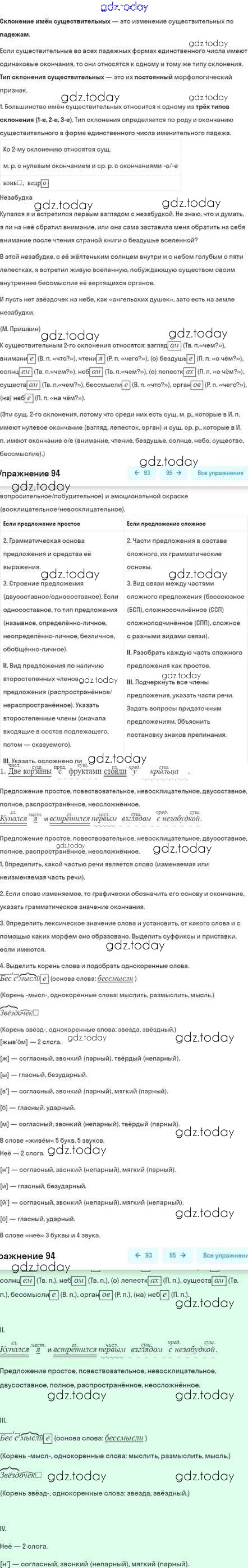 На страницах сайта gdz.today вы найдете учебный и вспомогательный материал, направленный на улучшения знаний школьной программы. ГДЗ - онлайн мир знаний Глава 6 Решение. Часть 2 94 Учебнику по Русскому языку для 5 класса Шмелёв, Флоренская Вентана-граф Алгоритм успеха 2022