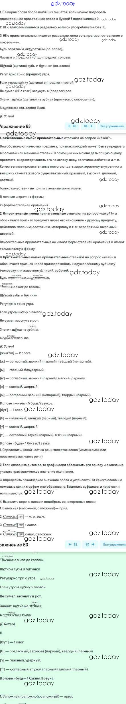 На страницах сайта gdz.today вы найдете учебный и вспомогательный материал, направленный на улучшения знаний школьной программы. ГДЗ - онлайн мир знаний Глава 7 Решение. Часть 2 63 Учебнику по Русскому языку для 5 класса Шмелёв, Флоренская Вентана-граф Алгоритм успеха 2022