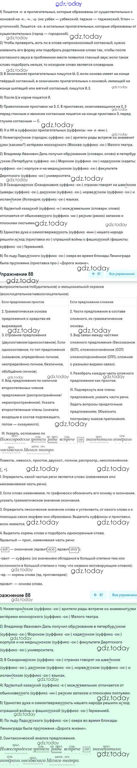 На страницах сайта gdz.today вы найдете учебный и вспомогательный материал, направленный на улучшения знаний школьной программы. ГДЗ - онлайн мир знаний Глава 7 Решение. Часть 2 88 Учебнику по Русскому языку для 5 класса Шмелёв, Флоренская Вентана-граф Алгоритм успеха 2022
