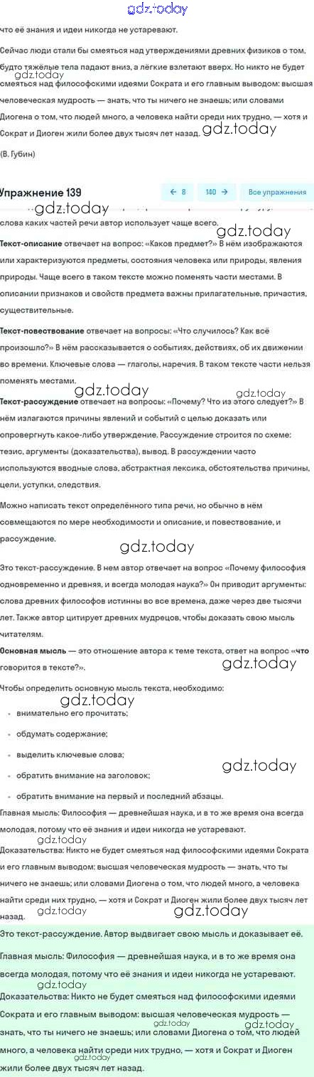 На страницах сайта gdz.today вы найдете учебный и вспомогательный материал, направленный на улучшения знаний школьной программы. ГДЗ - онлайн мир знаний Глава 6. Вопросы и задания для самоконтроля Решение. Часть 2 139 Учебнику по Русскому языку для 5 класса Шмелёв, Флоренская Вентана-граф Алгоритм успеха 2022