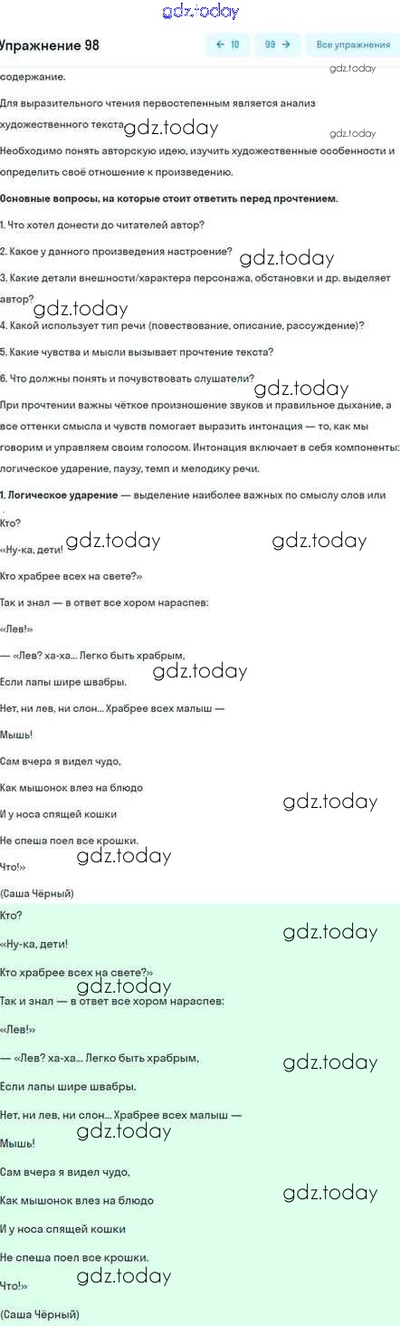 На страницах сайта gdz.today вы найдете учебный и вспомогательный материал, направленный на улучшения знаний школьной программы. ГДЗ - онлайн мир знаний Глава 7. Вопросы и задания для самоконтроля Решение. Часть 2 98 Учебнику по Русскому языку для 5 класса Шмелёв, Флоренская Вентана-граф Алгоритм успеха 2022