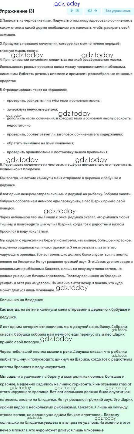 На страницах сайта gdz.today вы найдете учебный и вспомогательный материал, направленный на улучшения знаний школьной программы. ГДЗ - онлайн мир знаний Глава 8. Вопросы и задания для самоконтроля Решение. Часть 2 131 Учебнику по Русскому языку для 5 класса Шмелёв, Флоренская Вентана-граф Алгоритм успеха 2022