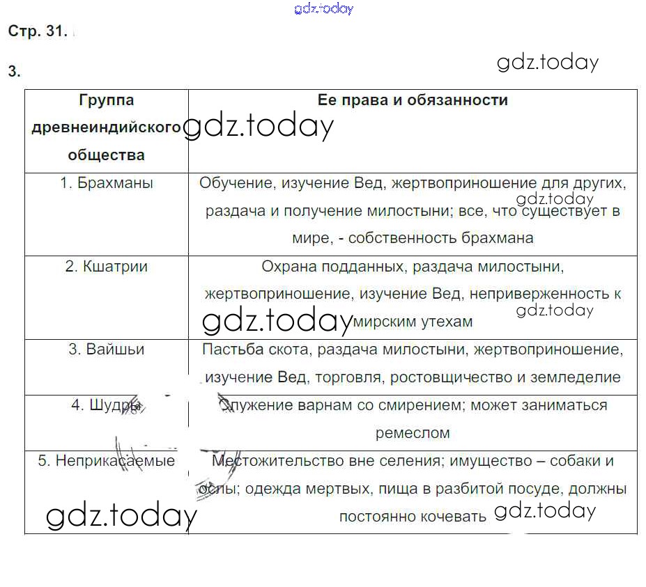 На страницах сайта gdz.today вы найдете учебный и вспомогательный материал, направленный на улучшения знаний школьной программы. ГДЗ - онлайн мир знаний Решение к теме 4. Древнейшие государства Индии и Китая стр. 31 Рабочей тетради по Всеобщей истории для 5 класса Абрамов, Абрамова Дрофа Вертикаль 2019