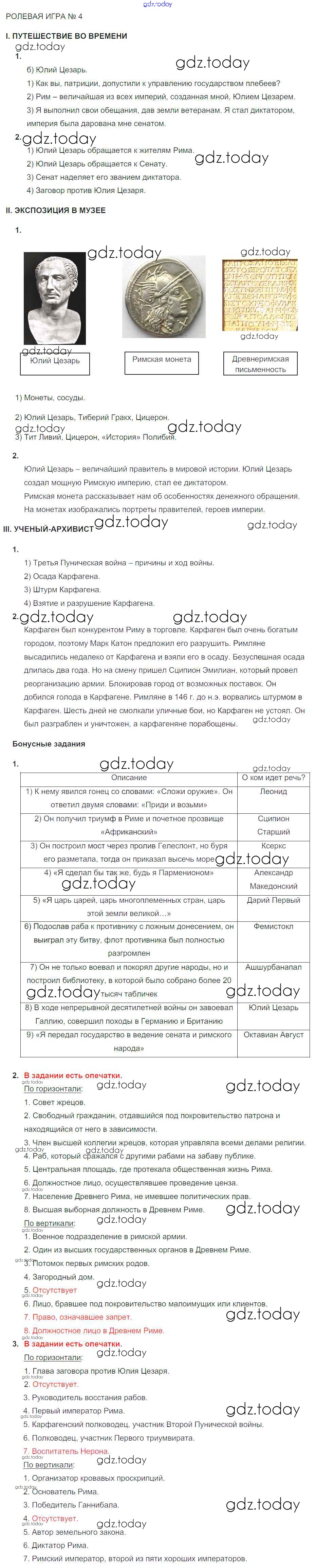 Ответы к Решение к ролевым играм 4 Тематическому контролю по Всеобщей истории для 5 класса Саплина Национальное образование 2016