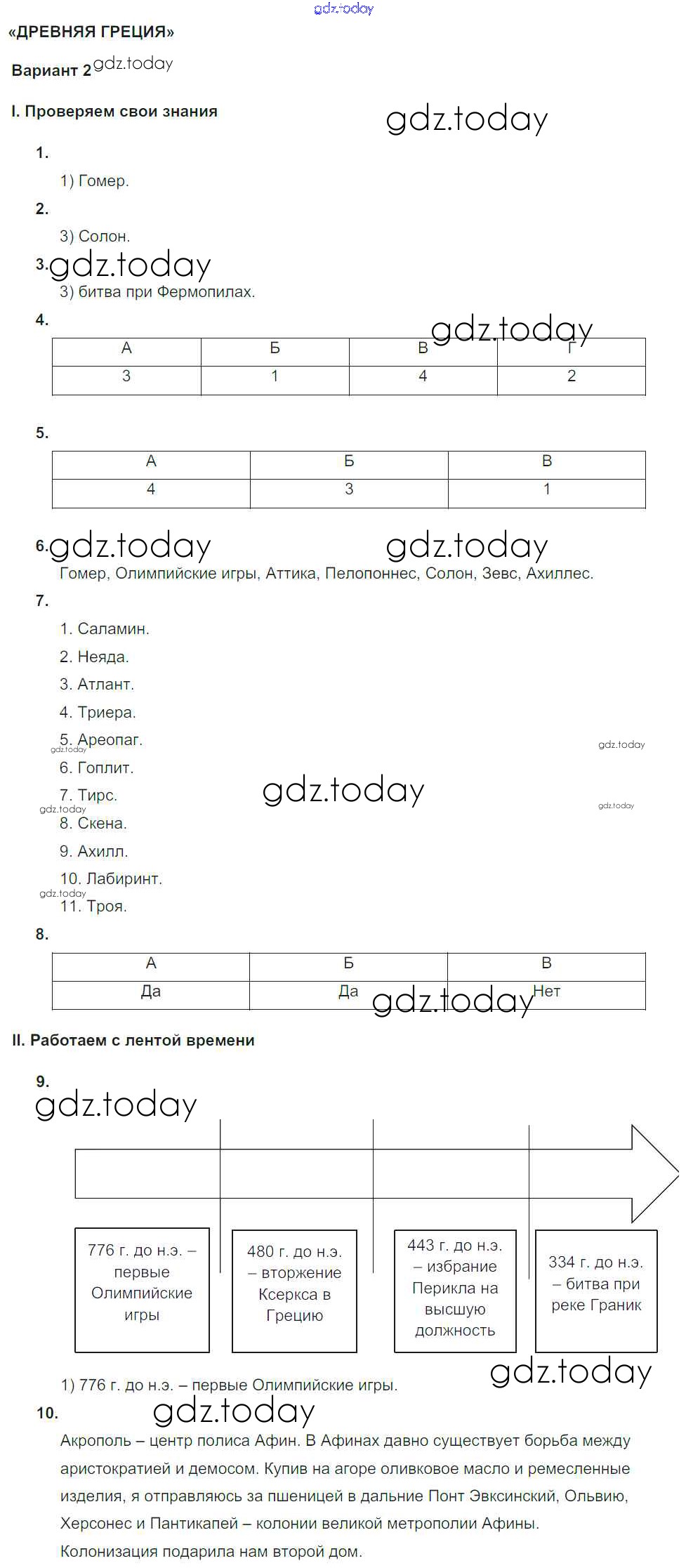 Ответы к КР-3. Древняя Греция Решение к контрольным работам вариант №2 Тематическому контролю по Всеобщей истории для 5 класса Саплина Национальное образование 2016