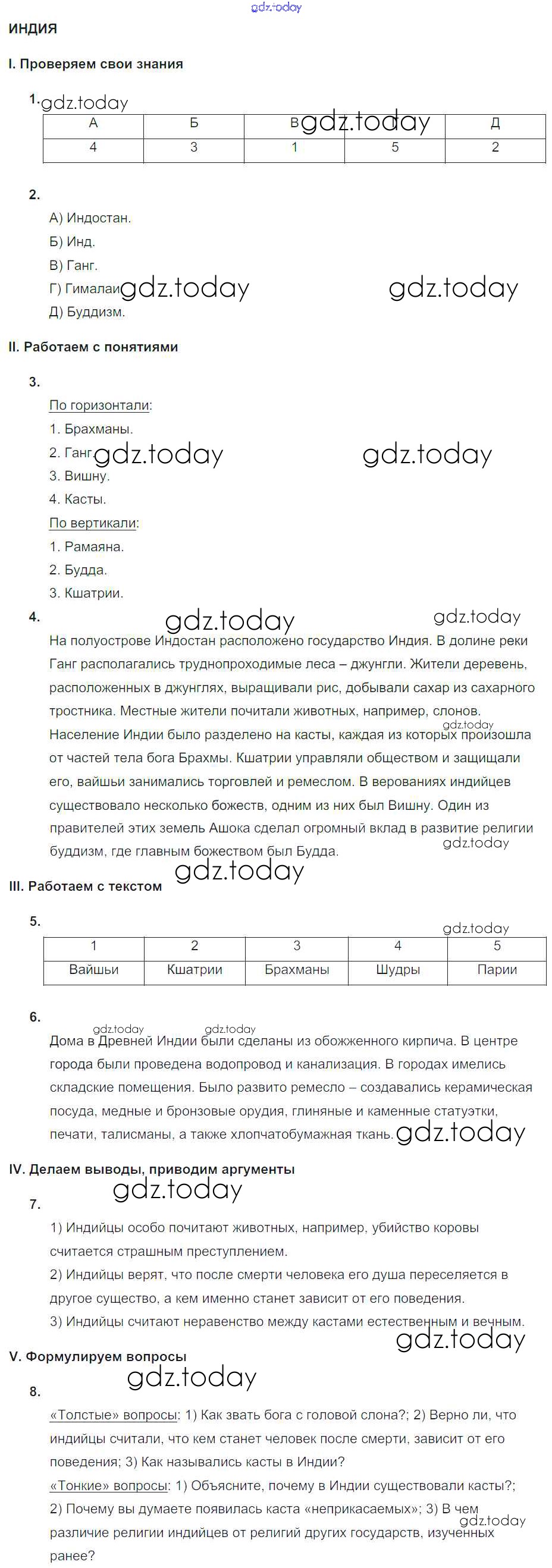 На страницах сайта gdz.today вы найдете учебный и вспомогательный материал, направленный на улучшения знаний школьной программы. ГДЗ - онлайн мир знаний Решение к самостоятельным работам СР №8. Индия Тематическому контролю по Всеобщей истории для 5 класса Саплина Национальное образование 2016
