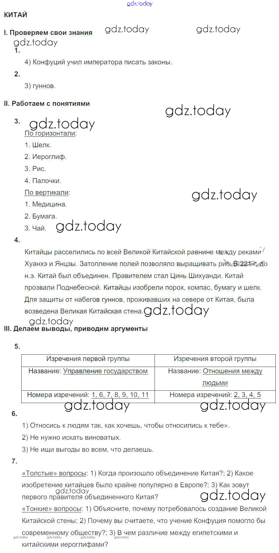 На страницах сайта gdz.today вы найдете учебный и вспомогательный материал, направленный на улучшения знаний школьной программы. ГДЗ - онлайн мир знаний Решение к самостоятельным работам СР №9. Китай Тематическому контролю по Всеобщей истории для 5 класса Саплина Национальное образование 2016
