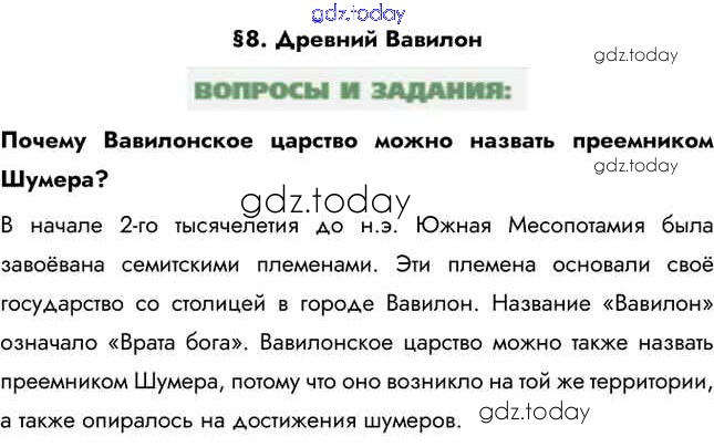 На страницах сайта gdz.today вы найдете учебный и вспомогательный материал, направленный на улучшения знаний школьной программы. ГДЗ - онлайн мир знаний Вопросы и задания Решение к §8 1 Учебнику по Всеобщей истории для 5 класса Уколова Просвещение Сферы 2019