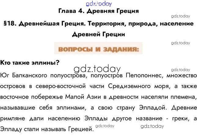 На страницах сайта gdz.today вы найдете учебный и вспомогательный материал, направленный на улучшения знаний школьной программы. ГДЗ - онлайн мир знаний Вопросы и задания Решение к §18 1 Учебнику по Всеобщей истории для 5 класса Уколова Просвещение Сферы 2019