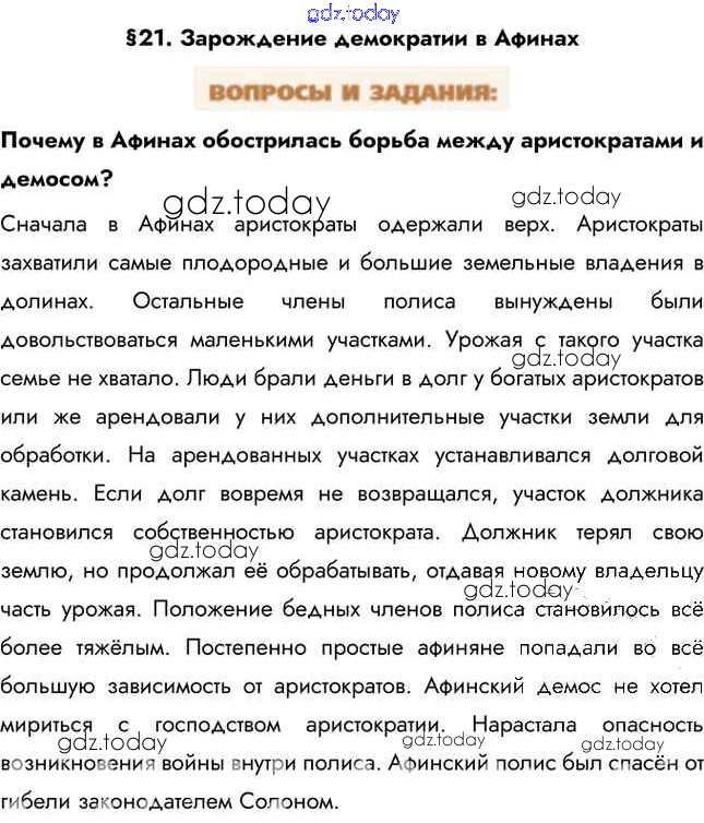 На страницах сайта gdz.today вы найдете учебный и вспомогательный материал, направленный на улучшения знаний школьной программы. ГДЗ - онлайн мир знаний Вопросы и задания Решение к §21 1 Учебнику по Всеобщей истории для 5 класса Уколова Просвещение Сферы 2019