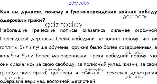 На страницах сайта gdz.today вы найдете учебный и вспомогательный материал, направленный на улучшения знаний школьной программы. ГДЗ - онлайн мир знаний Вопросы и задания Решение к §23 4 Учебнику по Всеобщей истории для 5 класса Уколова Просвещение Сферы 2019