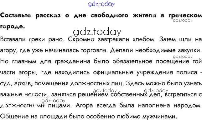 На страницах сайта gdz.today вы найдете учебный и вспомогательный материал, направленный на улучшения знаний школьной программы. ГДЗ - онлайн мир знаний Вопросы и задания Жизнь в греческом городе 2 Учебнику по Всеобщей истории для 5 класса Уколова Просвещение Сферы 2019