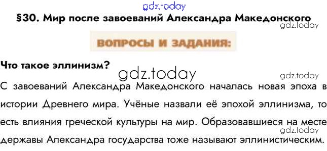 На страницах сайта gdz.today вы найдете учебный и вспомогательный материал, направленный на улучшения знаний школьной программы. ГДЗ - онлайн мир знаний Вопросы и задания Решение к §30 1 Учебнику по Всеобщей истории для 5 класса Уколова Просвещение Сферы 2019