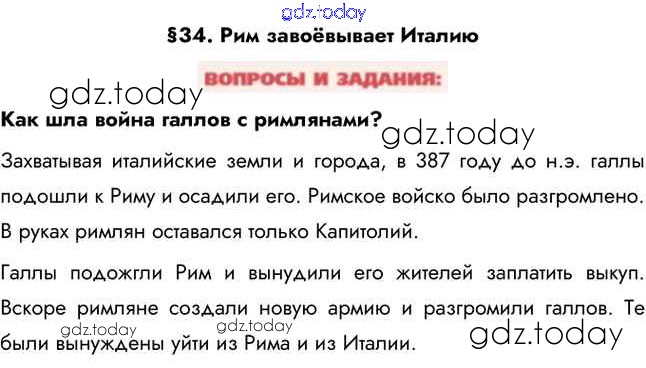 На страницах сайта gdz.today вы найдете учебный и вспомогательный материал, направленный на улучшения знаний школьной программы. ГДЗ - онлайн мир знаний Вопросы и задания Решение к §34 1 Учебнику по Всеобщей истории для 5 класса Уколова Просвещение Сферы 2019
