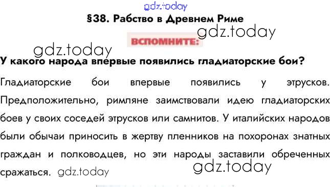 На страницах сайта gdz.today вы найдете учебный и вспомогательный материал, направленный на улучшения знаний школьной программы. ГДЗ - онлайн мир знаний Вспомните Решение к §38 1 Учебнику по Всеобщей истории для 5 класса Уколова Просвещение Сферы 2019