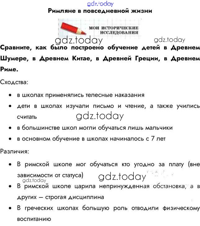 На страницах сайта gdz.today вы найдете учебный и вспомогательный материал, направленный на улучшения знаний школьной программы. ГДЗ - онлайн мир знаний Вспомните Римляне в повседневной жизни 1 Учебнику по Всеобщей истории для 5 класса Уколова Просвещение Сферы 2019