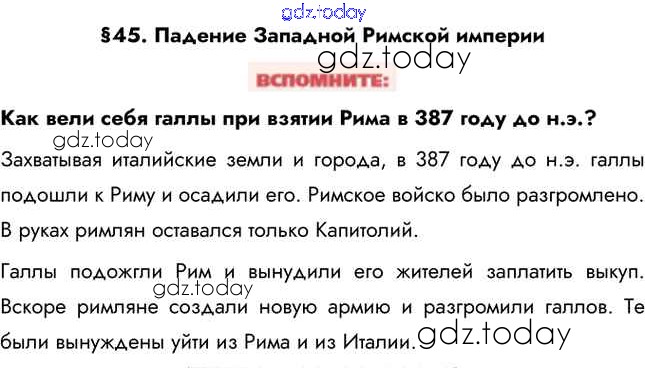 На страницах сайта gdz.today вы найдете учебный и вспомогательный материал, направленный на улучшения знаний школьной программы. ГДЗ - онлайн мир знаний Вспомните Решение к §45 1 Учебнику по Всеобщей истории для 5 класса Уколова Просвещение Сферы 2019