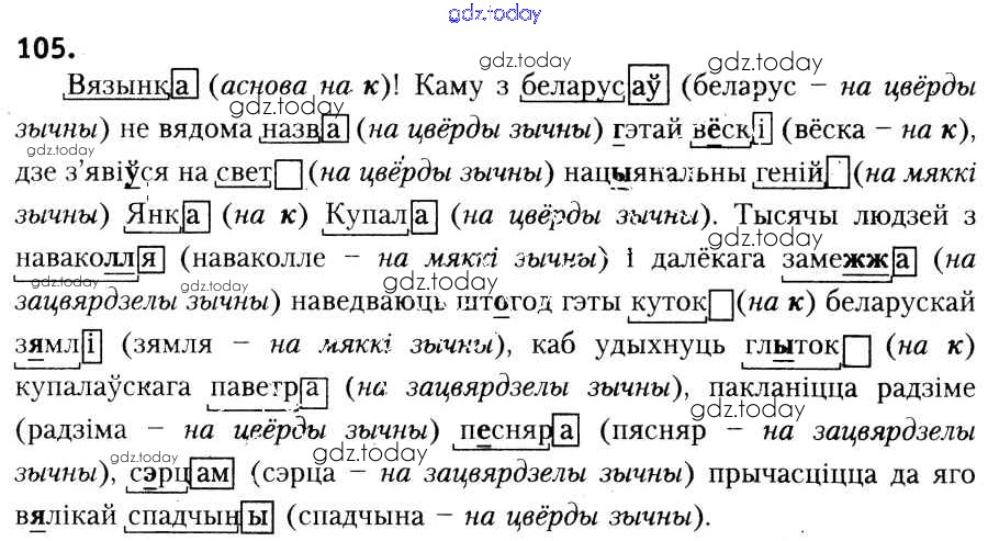 На страницах сайта gdz.today вы найдете учебный и вспомогательный материал, направленный на улучшения знаний школьной программы. ГДЗ - онлайн мир знаний Рашальнік да практыкаванняў 105 Учебнику по Белорусскому языку для 6 класса Красней, Лаурель Национальный институт образования 2015
