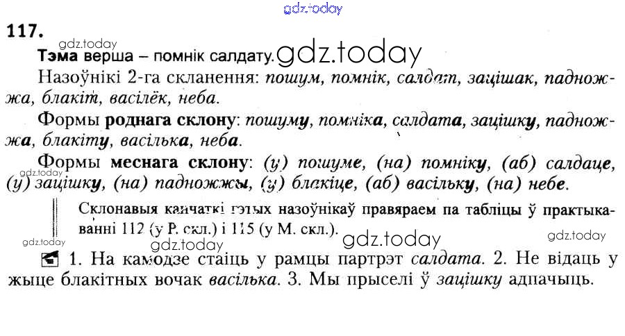 Ответы к Рашальнік да практыкаванняў 117 Учебнику по Белорусскому языку для 6 класса Красней, Лаурель Национальный институт образования 2015