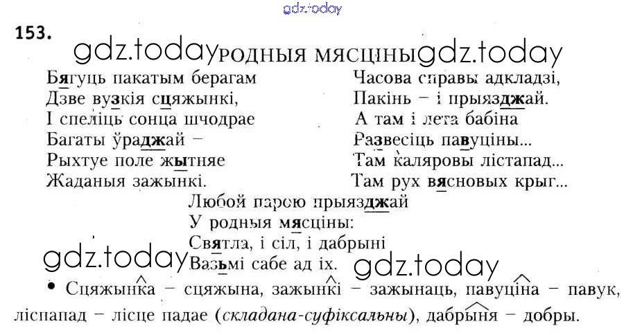 Ответы к Рашальнік да практыкаванняў 153 Учебнику по Белорусскому языку для 6 класса Красней, Лаурель Национальный институт образования 2015