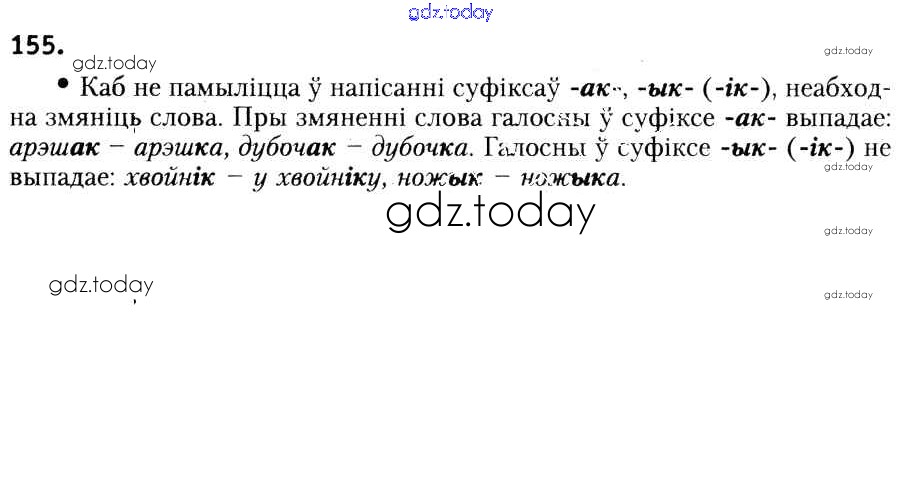 На страницах сайта gdz.today вы найдете учебный и вспомогательный материал, направленный на улучшения знаний школьной программы. ГДЗ - онлайн мир знаний Рашальнік да практыкаванняў 155 Учебнику по Белорусскому языку для 6 класса Красней, Лаурель Национальный институт образования 2015