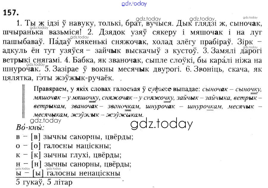 На страницах сайта gdz.today вы найдете учебный и вспомогательный материал, направленный на улучшения знаний школьной программы. ГДЗ - онлайн мир знаний Рашальнік да практыкаванняў 157 Учебнику по Белорусскому языку для 6 класса Красней, Лаурель Национальный институт образования 2015