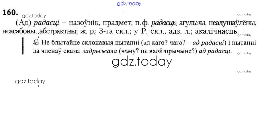 На страницах сайта gdz.today вы найдете учебный и вспомогательный материал, направленный на улучшения знаний школьной программы. ГДЗ - онлайн мир знаний Рашальнік да практыкаванняў 160 Учебнику по Белорусскому языку для 6 класса Красней, Лаурель Национальный институт образования 2015